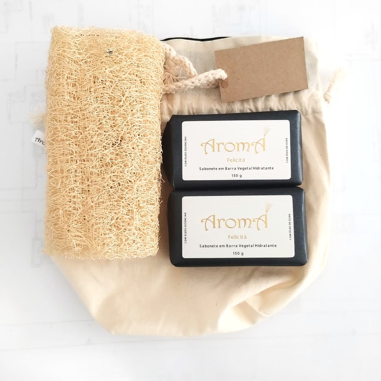 Kit Felicità Masculino: 2 Sabonetes + Bucha Vegetal + Saco de Algodão